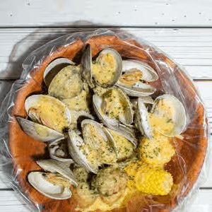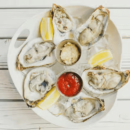 Oyster 6 pieces, cocktail shrimp 6 pieces, snow crab 1 cluster